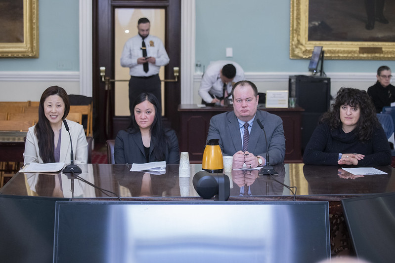 Brooklyn A’s Tamara Del Carmen (center-left) and Alex Knipenberg (center-right) testifying at the Finance Committee hearing at City Hall last month. (Official NYC Council Photo by John McCarten/NYC Council Media Unit)