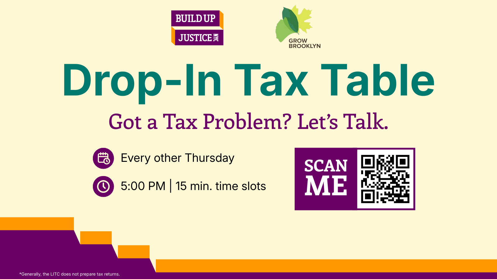 Online via ZoomGet your tax questions answered by experts! Our "Drop-In Tax Table" in partnership with Grow Brooklyn is held every other Thursday as virtual office-hours. Sign up for a personal 15-minute virtual appointment between 5 pm to 7 pm to discuss things like filing requirements, credit eligibility, self-employment obligations, and more. Click below to register for […]
