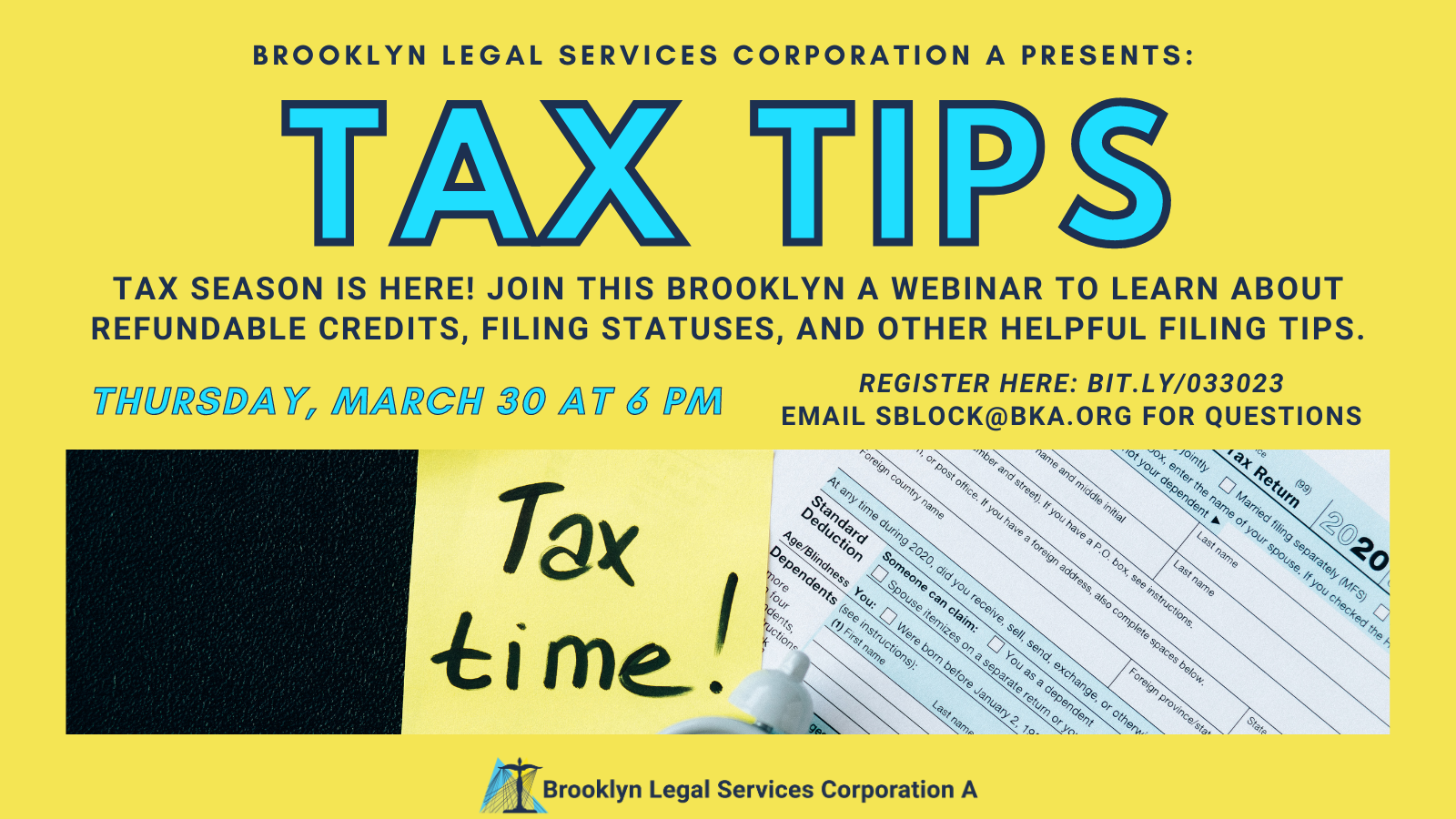 We are in the heart of tax season and Brooklyn A is here to help! Join our webinar "Tax Tips" on Thursday, March 30 at 6PM to learn about refundable credits, filing statuses, and other helpful filing tips. Brooklyn A experts will walk you through the key details to pay attention to this year and […]